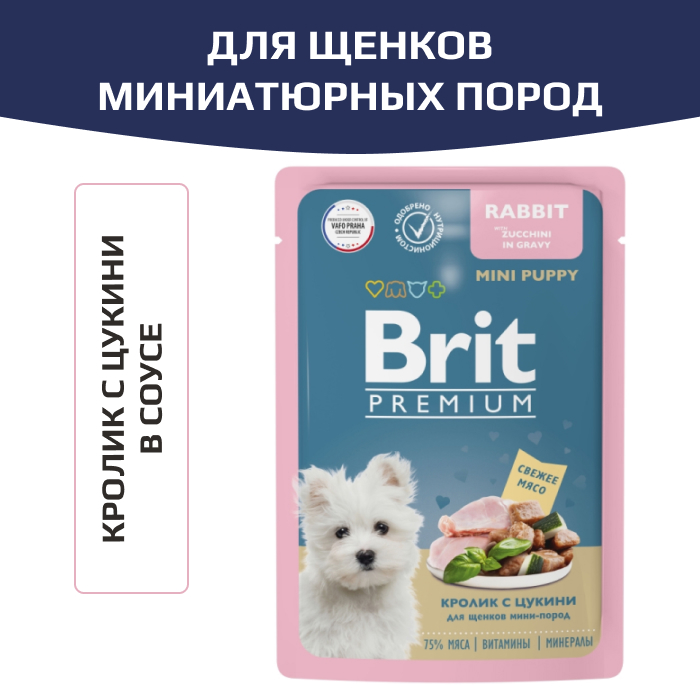 Brit Premium Puppy корм консервированный для щенков миниатюрных пород, кролик с цукини в соусе.