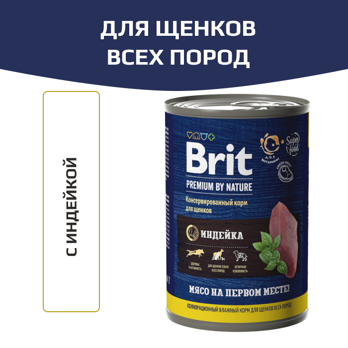 Полнорационный консервированный корм премиум класса индейка для щенков.