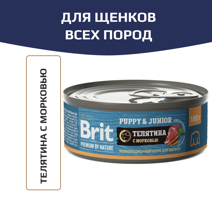 Brit Premium By Nature корм консервированный для щенков всех пород, с телятиной и морковью.