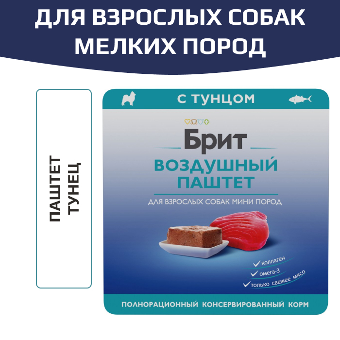 Brit Premium Воздушный паштет для взрослых собак мини пород, Тунец.