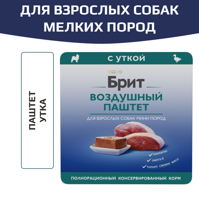 Brit Premium Воздушный паштет для взрослых собак мини пород, Утка.