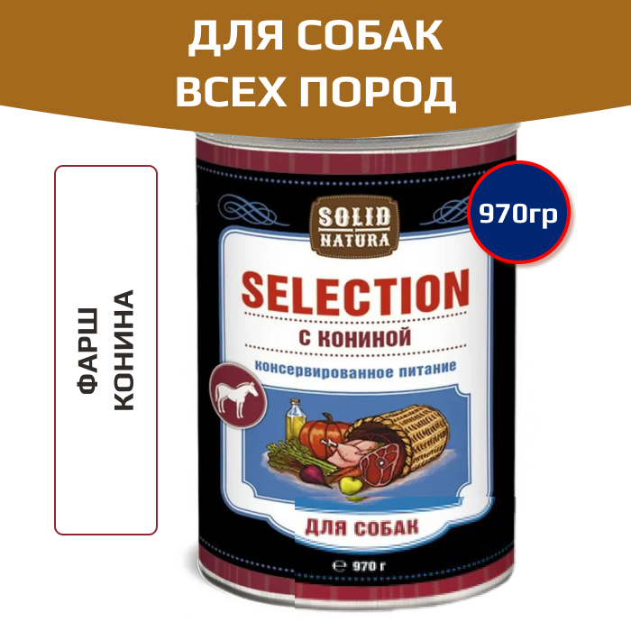 Solid Natura Selection консервы для собак всех пород, конина.