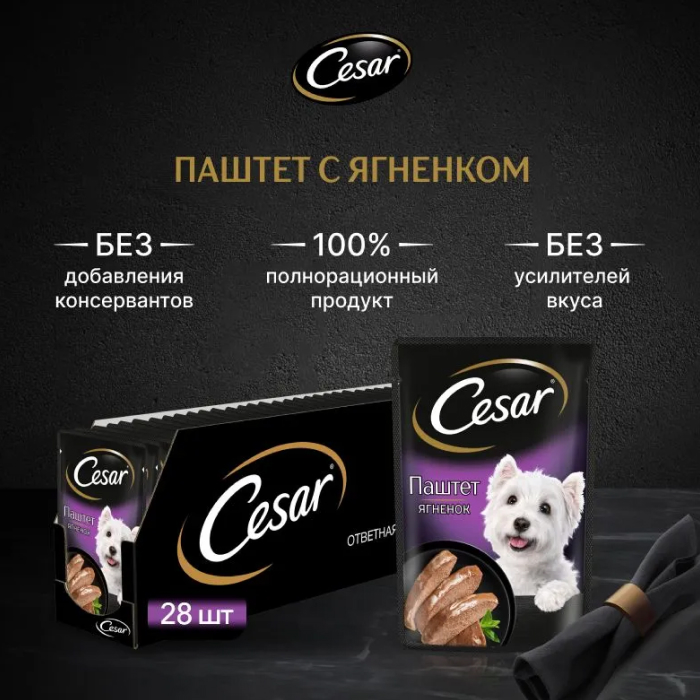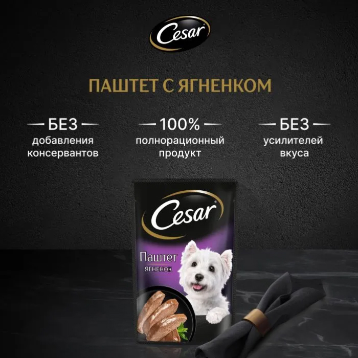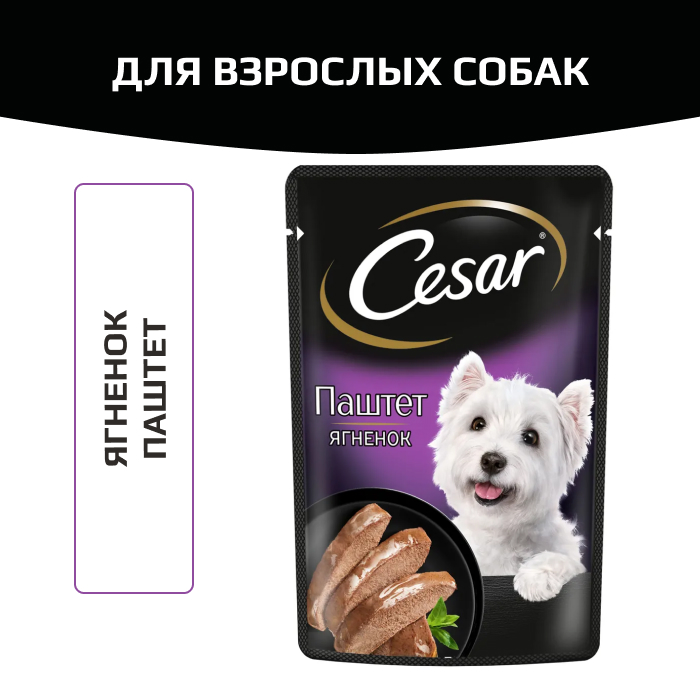 Cesar корм консервированный для взрослых собак паштет с ягненком.