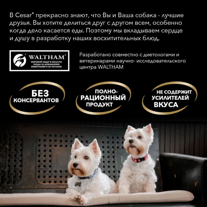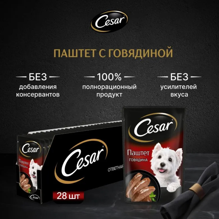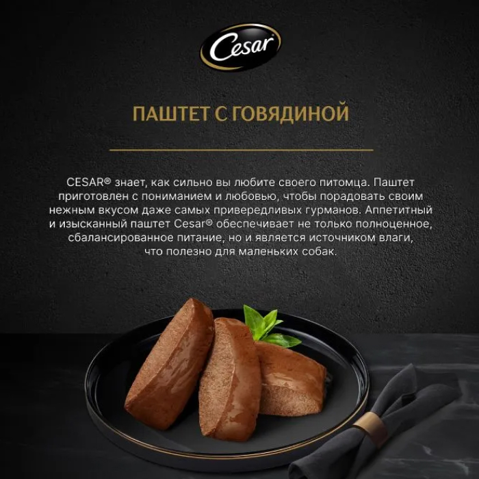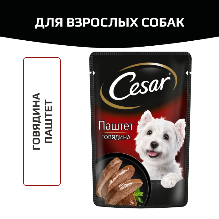 Cesar корм консервированный для взрослых собак паштет с говядиной.