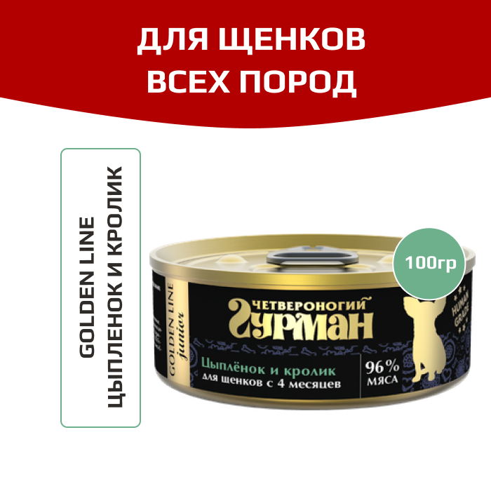 Четвероногий Гурман Golden line корм консервированный для щенков цыпленок и кролик.