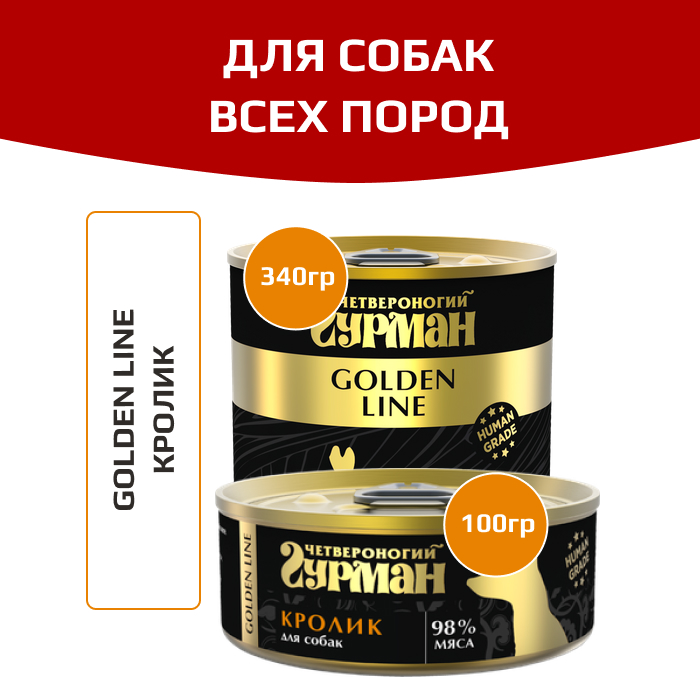 Четвероногий Гурман Golden line корм консервированный для собак кролик.