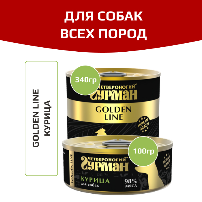Четвероногий Гурман Golden line корм консервированный для собак курица.