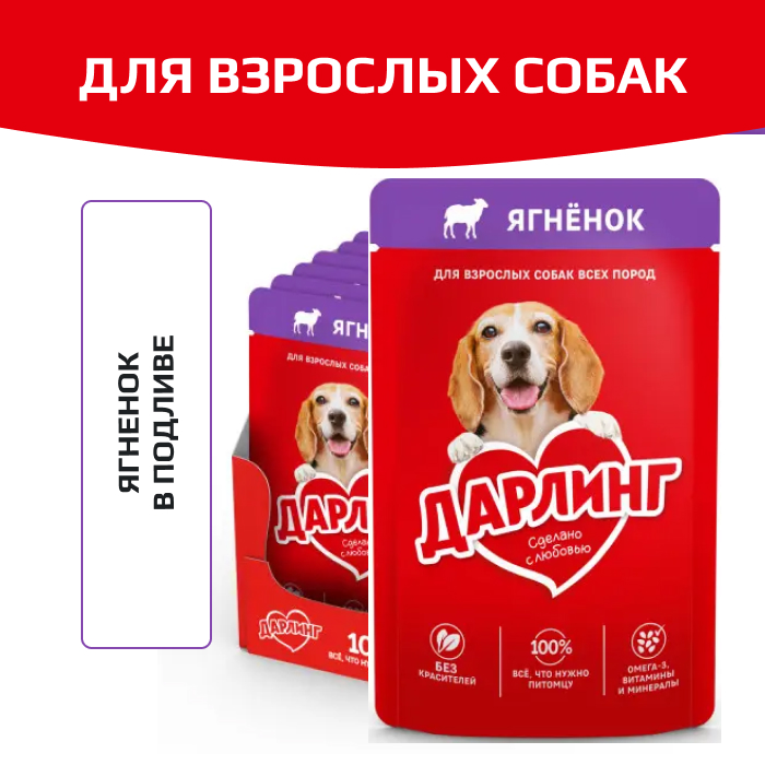 Дарлинг консервы для взрослых собак ягненок в подливе.