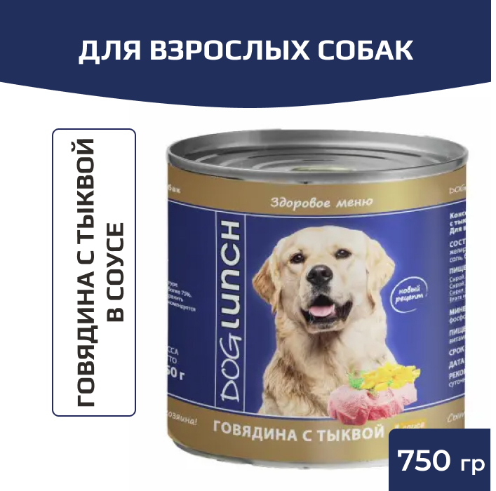 Dog Lunch консервы для собак Говядина с тыквой в соусе для собак 750гр.