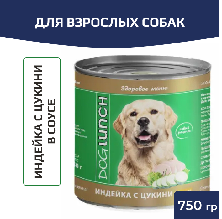 Dog Lunch консервы для собак Индейка с цукини в соусе 750гр.