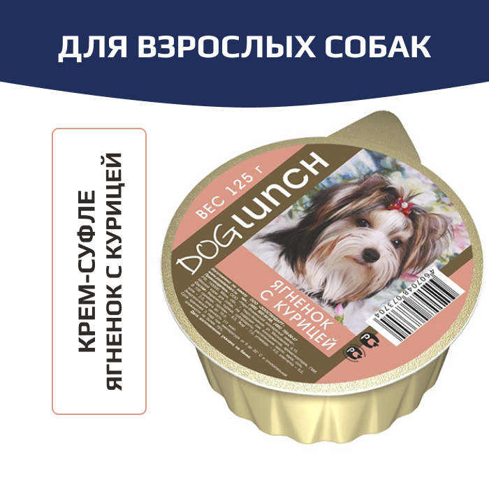 Dog Lunch корм консервированный для собак крем-суфле ягненок с курицей .