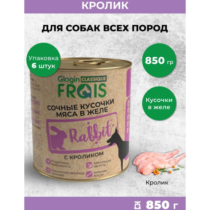 Frais Classique консервы для собак, кусочки мяса с кроликом в желе.