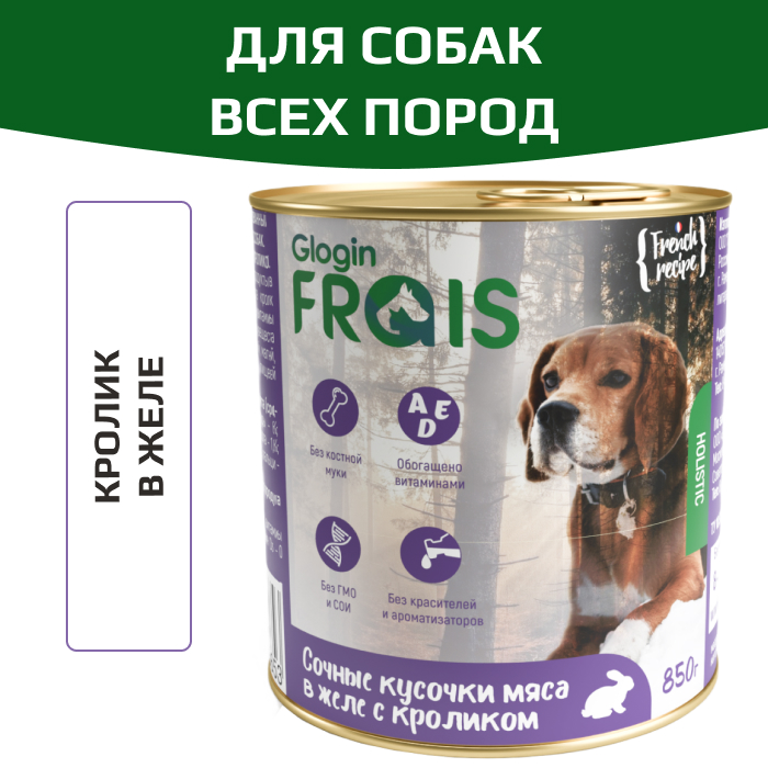 Frais Holistic консервы для собак, сочные кусочки мяса в желе с кроликом.