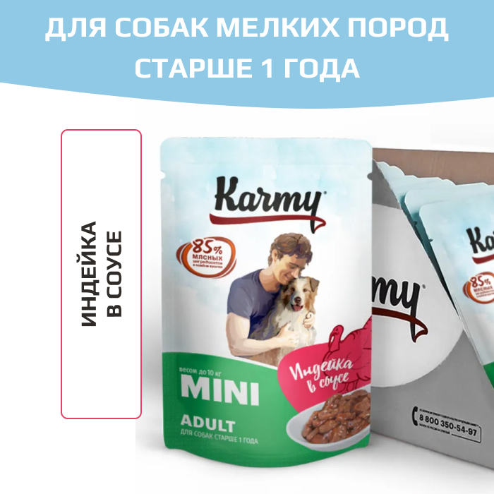 KARMY Mini Adult консервы для собак мелких пород Индейка в соусе.