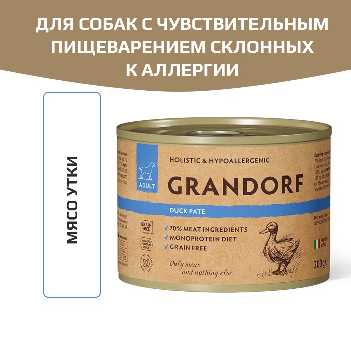 Grandorf Holistic & Hupoallergenic консервы для собак всех возрастов с нормальной активностью, чувствительным пищеварением или склонных к аллергии.