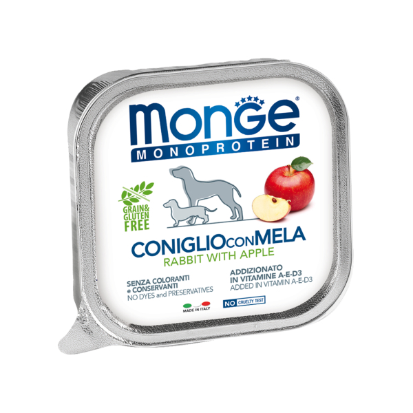 Monge (Монж) Dog Monoprotein Fruits полнорационный беззерновой влажный корм из мяса кролика с яблоком для взрослых собак всех пород.