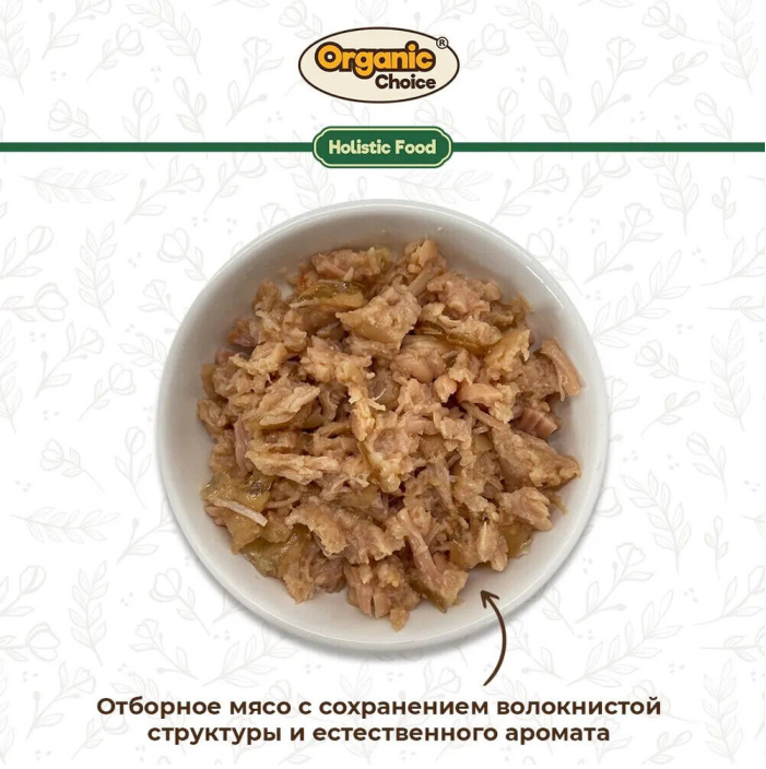 Organic Choice - монокомпонентные консервы для собак класса холистик. Рационы для животных Organic Choice - это корма класса холистик, для хозяев, которые заботятся о питании и здоровье своих питомцев. Для производства мы выбираем лучшие заводы России! А ингредиенты, из которых изготовлены корма, проходят тщательный отбор и соответствуют высоким мировым стандартам качества. Консервы не содержат злаки, ГМО, сою и ароматизаторы..