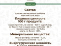протеин - 10,0г, жир - 9,0г, зола - 2,0г, морская соль - 0,3-0,5г, влага- 82%, фосфор - 0,4г, кальций - 0,3г.