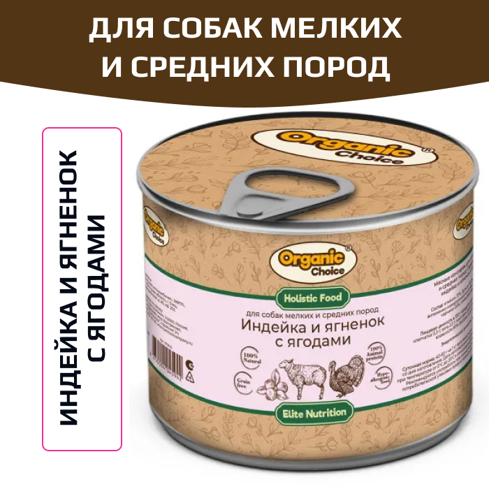 Organic Сhoice влажный корм для взрослых собак мелких и средних пород индейка и ягненок с ягодами.
