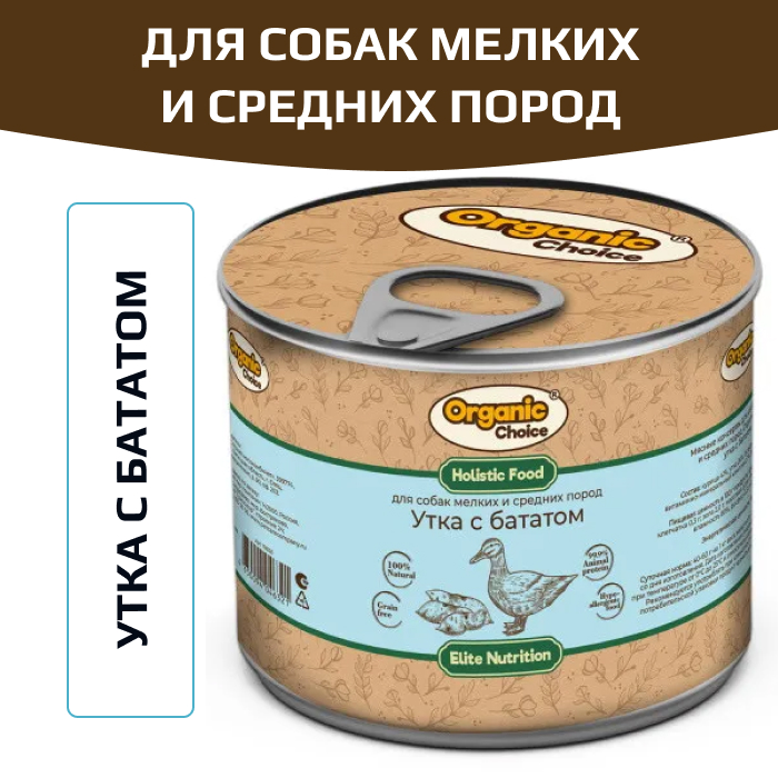 Organic Сhoice влажный корм для взрослых собак мелких и средних пород утка с бататом.