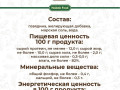 протеин - 12,0г, жир - 10,0г, зола - 2,0г, морская соль - 0,3-0,5г, влага- 82%, фосфор - 0,4г, кальций - 0,3г.