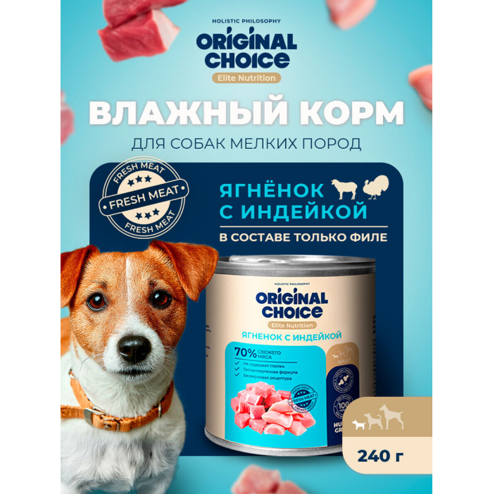 Original Choice Elite Nutrition Adult Mini влажный корм для собак мелких пород, ягненок с индейкой.