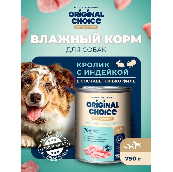 Original Choice Elite Nutrition Adult влажный корм для собак всех пород, кролик с индейкой.