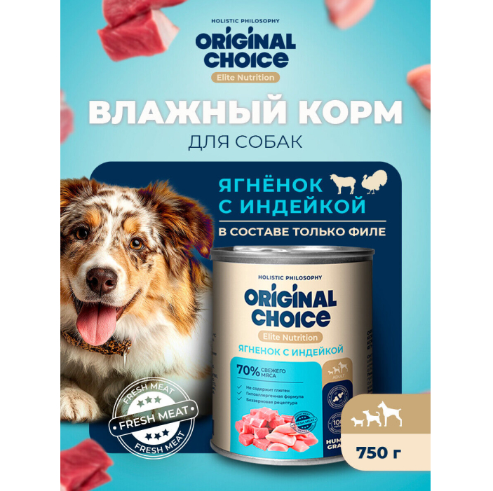 Original Choice Elite Nutrition Adult влажный корм для собак всех пород, ягненок с индейкой.