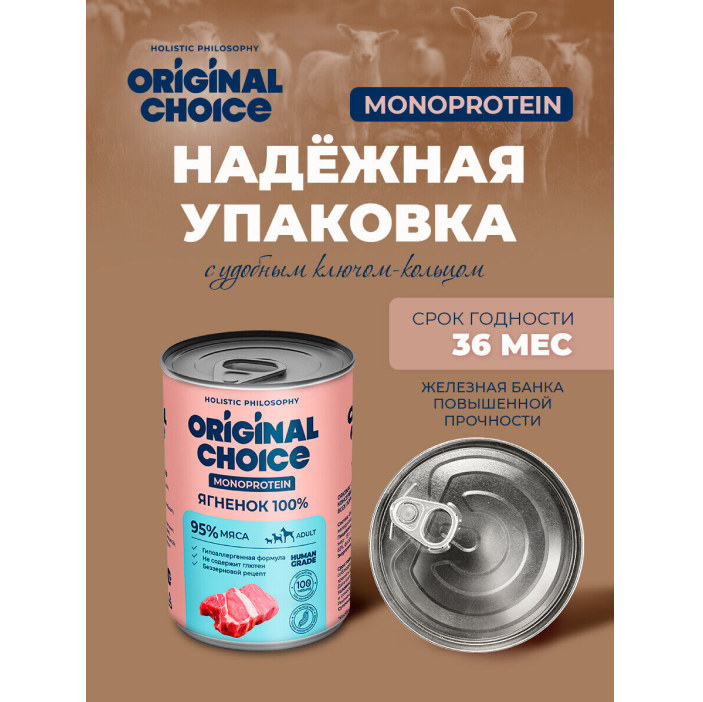 Original Choice Monoprotein Adult влажный корм для собак всех пород, ягненок, 340гр.