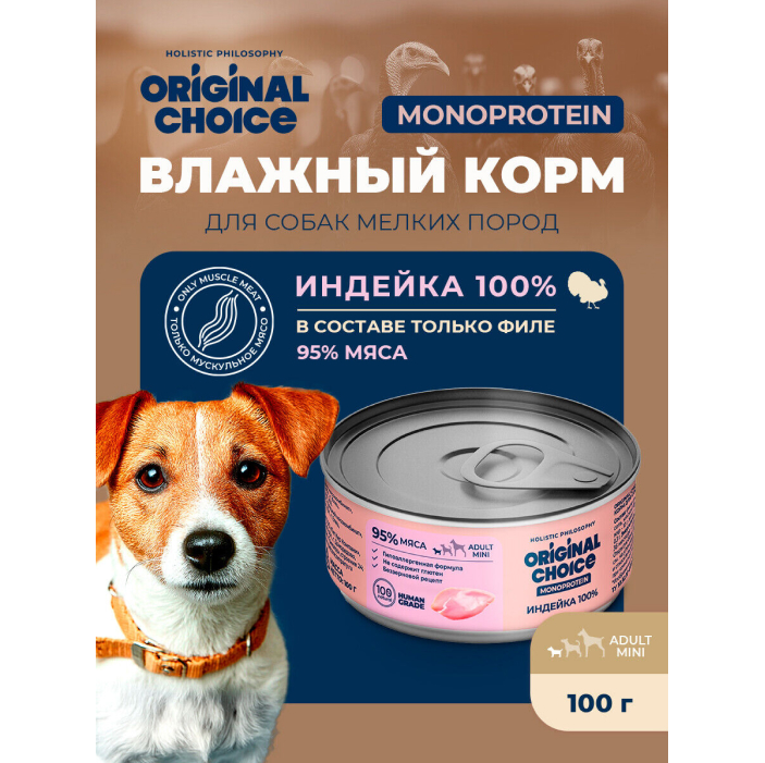 Original Choice Monoprotein Mini Adult влажный корм для собак мелких пород, индейка.