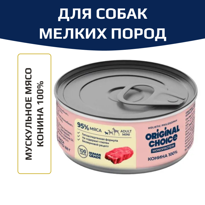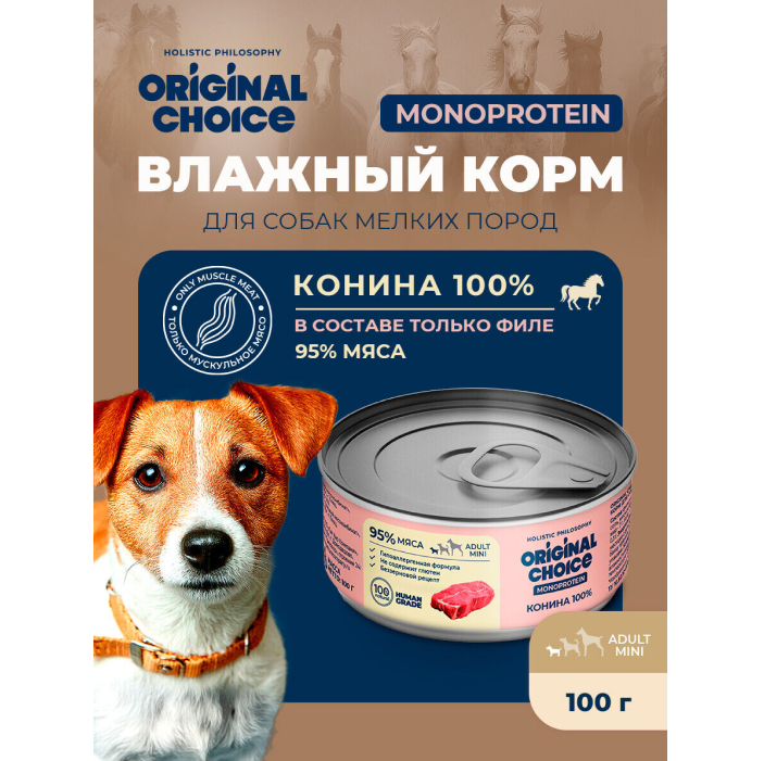 Original Choice Monoprotein Mini Adult влажный корм для собак мелких пород, конина.