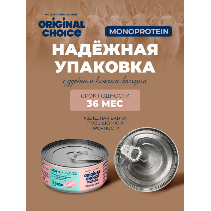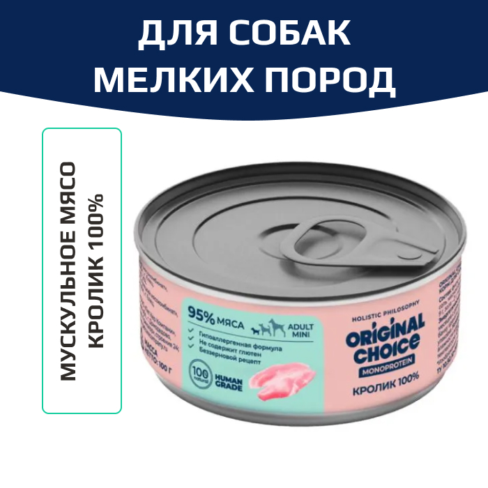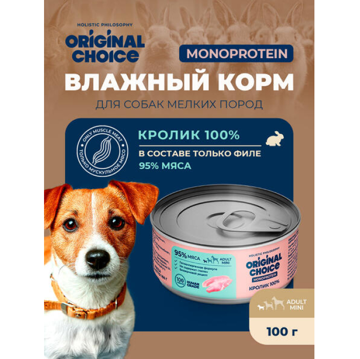 Original Choice Monoprotein Mini Adult влажный корм для собак мелких пород, кролик.