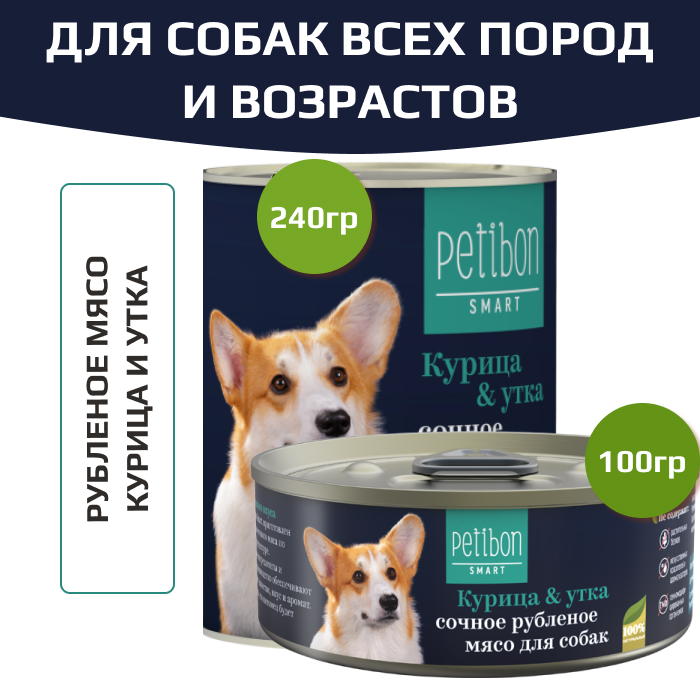 Petibon Smart консервы для собак рубленое мясо курица и утка.