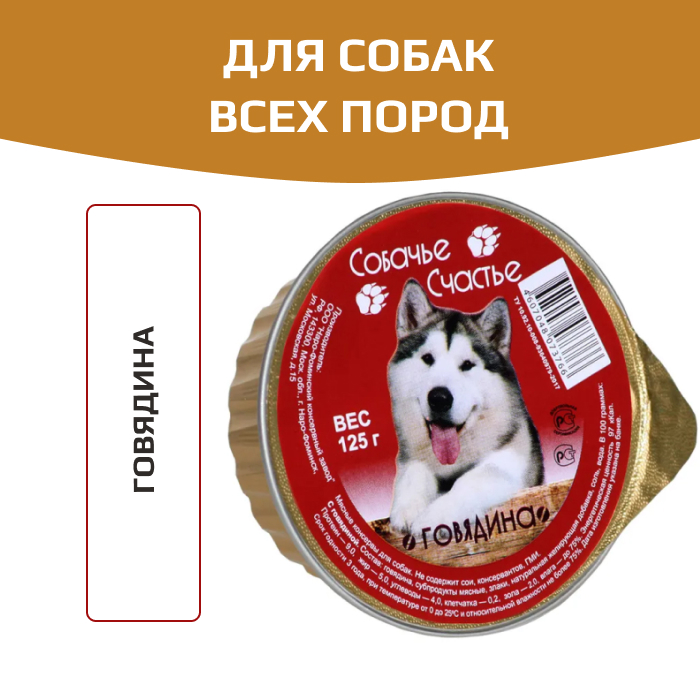 СОБАЧЬЕ СЧАСТЬЕ консервы для собак Говядина.
