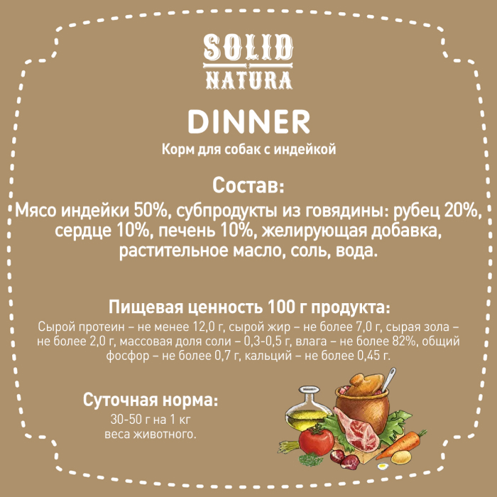 Solid Natura Dinner консервы для собак всех пород, индейка.