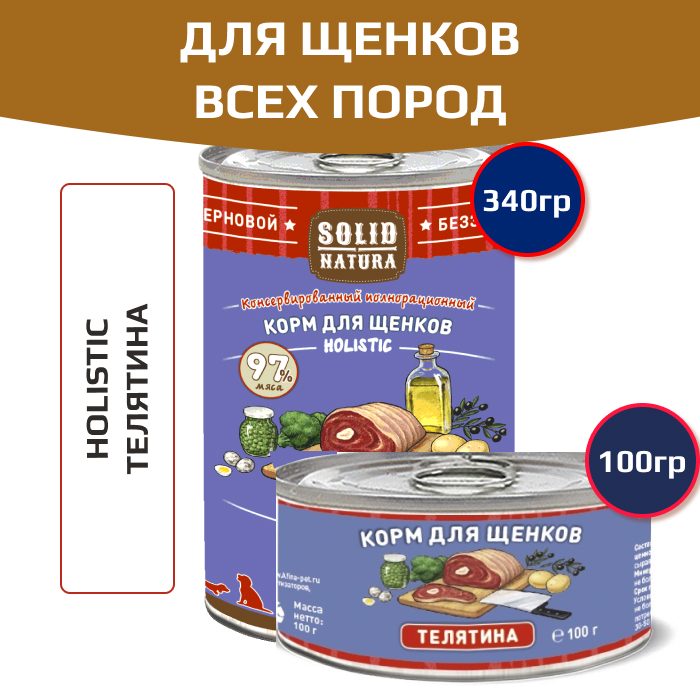 Solid Natura Holistic консервы для щенков всех пород, телятина.