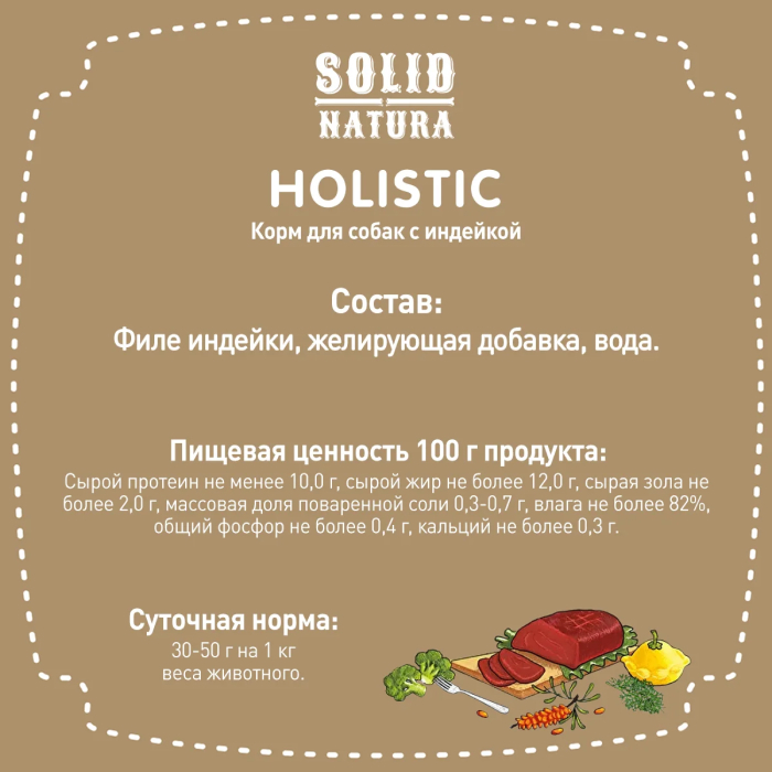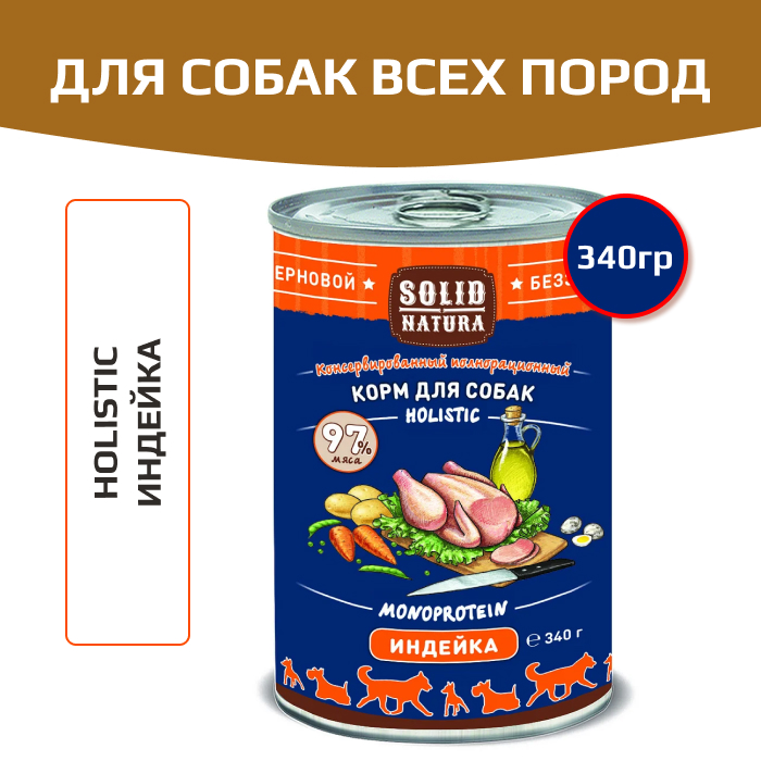 Solid Natura Holistic консервы для взрослых собак всех пород, индейка.