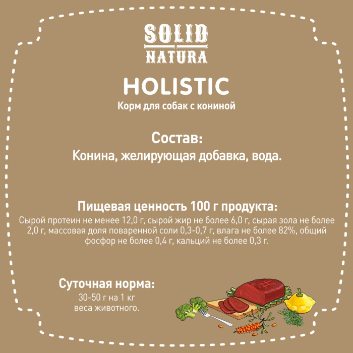 Solid Natura Holistic консервы для взрослых собак всех пород, конина.