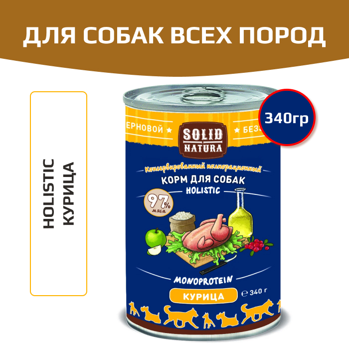 Solid Natura Holistic консервы для взрослых собак всех пород, курица.
