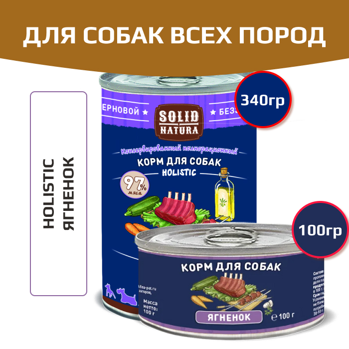 Solid Natura Holistic консервы для взрослых собак всех пород, ягненок.