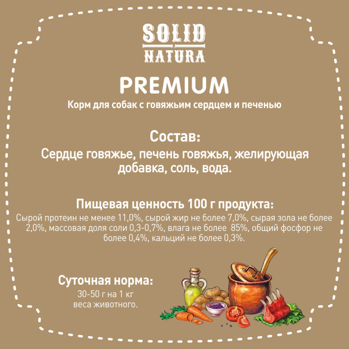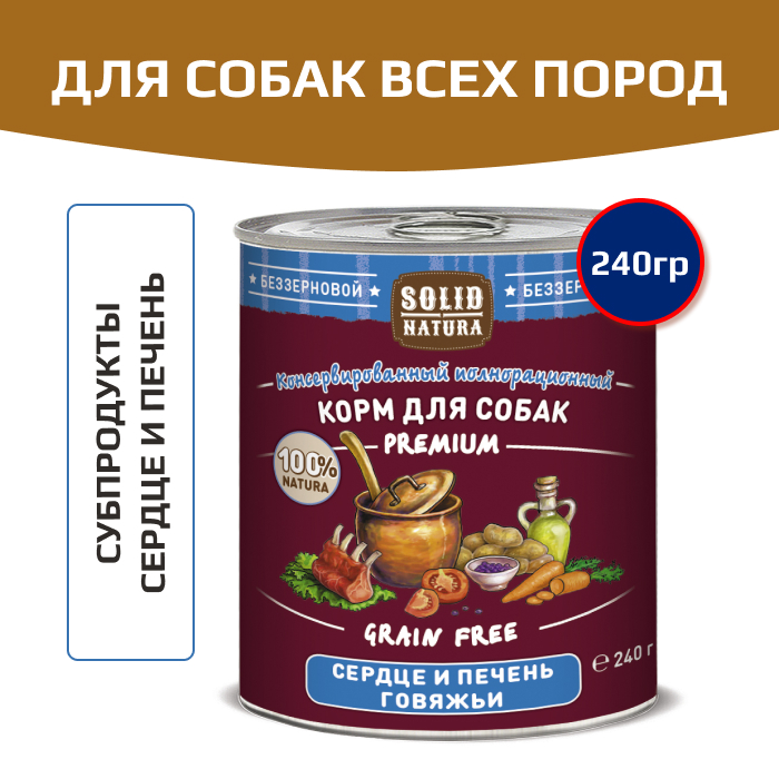 Solid Natura Premium консервы для собак всех пород, сердце и печень.
