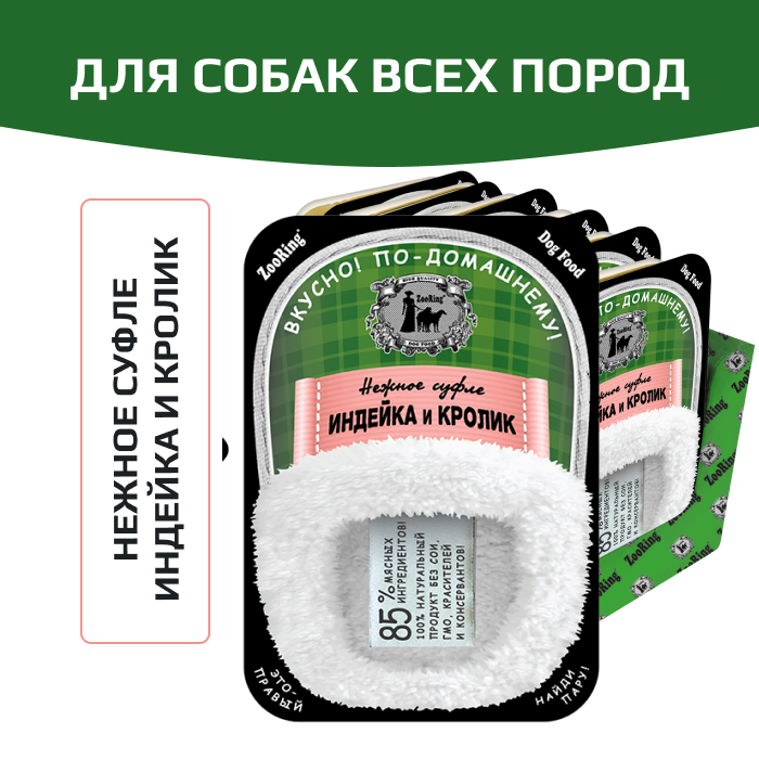 ZooRing для собак корм консервированный для собак суфле индейка и кролик.