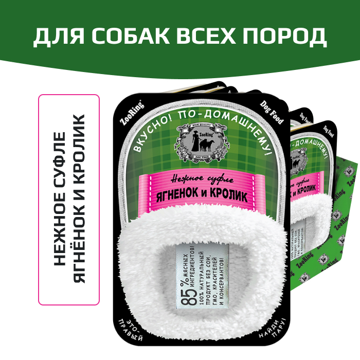 ZooRing для собак корм консервированный для собак суфле ягненок и кролик.