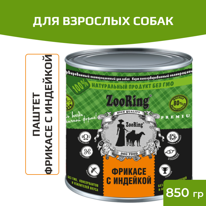 ZooRing корм консервированный для собак фрикасе с индейкой, паштет.