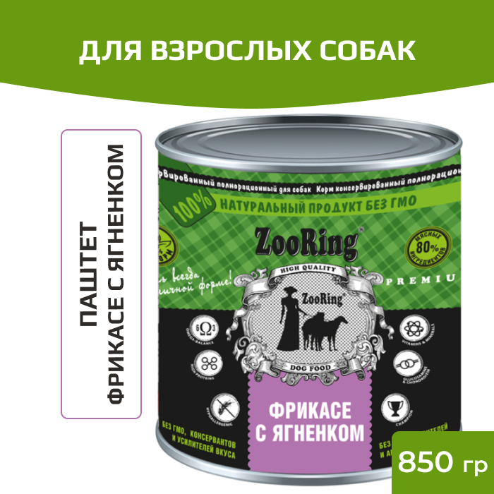 ZooRing корм консервированный для собак фрикасе с ягненком, паштет.