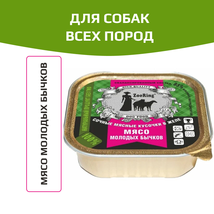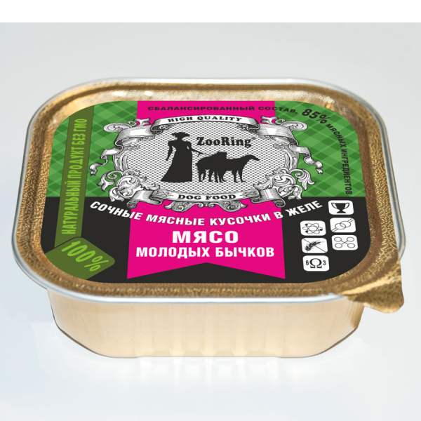 ZooRing корм консервированный для собак кусочки в желе мясо молодых бычков.