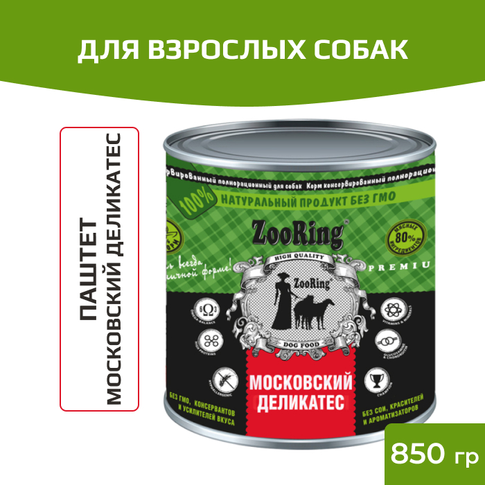 ZooRing корм консервированный для собак московский деликатес, паштет.
