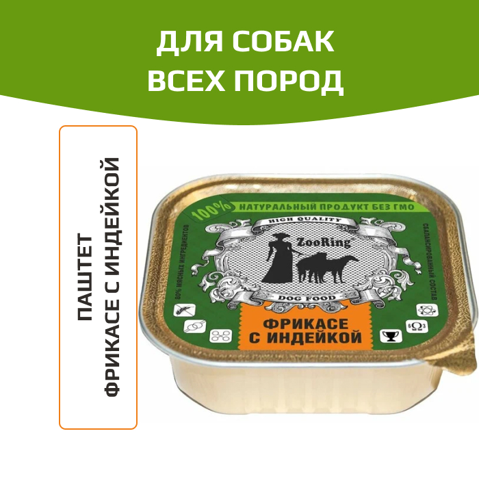 ZooRing корм консервированный для собак паштет фрикасе с индейкой.