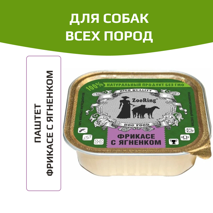 ZooRing корм консервированный для собак паштет фрикасе с ягненком.