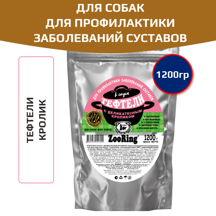 ZooRing корм консервированный для собак тефтели в соусе с деликатесным кроликом.